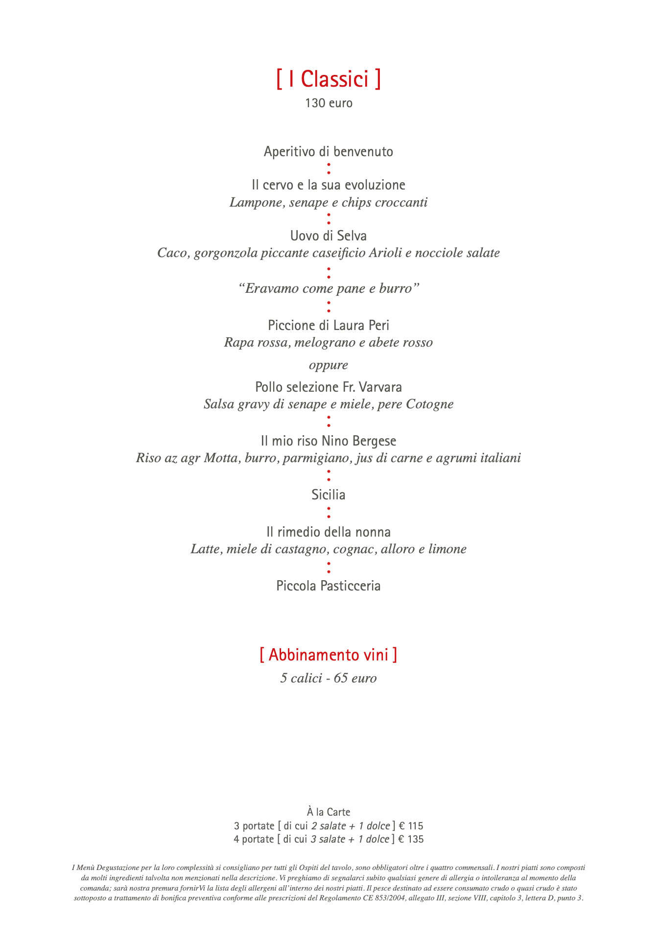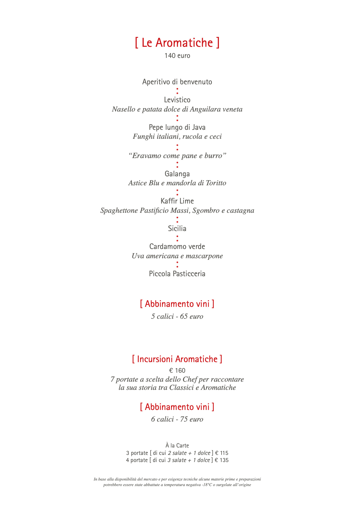 Il nostro Menu: una naturale evoluzione delle tradizioni italiane che abbracciano le contaminazioni di tutto il mondo lasciandosi guidare dall'aromaticità.